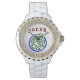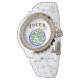 Eine wunderbare Damenuhr mit weißem Armband und grün-weiß-kariertem Ziffernblatt. Trägt sich ganz fabelhaft. Exzellenter Druck, sehr klare Farben. Schönes Design.