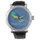 Uhr, Vintage Männeruhr mit schwarzem Lederarmband