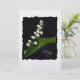 Single aus Lilie des Tales vor schwarzem Hintergrund. Text liest; Mai.