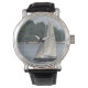 Uhr, Vintage Männeruhr mit schwarzem Lederarmband