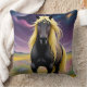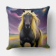 Ein atemberaubendes, schwarzes Pferd mit einer strahlenden goldenen Mähne in einer farbenfrohen, lebendigen Wiese unter einem Dämmerhimmel, das Schönheit, Kraft und Geheimnis inmitten der ätherischen Naturlandschaft ausstrahlt.