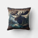 Ein Elch liegt stolz in der Nähe eines kristallklaren Flusses, gerahmt von den hohen Bergen und dichten Kiefern während der ruhigen Abenddämmerung.