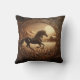 Ein mächtiges Pferd Galopp durch goldene Felder als die Sonne Sets hinter entfernten Bergen und eine rustikale Scheune.