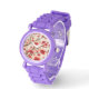 Uhr, Kinderuhr aus Edelstahluhr mit lila Lederarmband