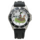 Uhr, Vintage Männeruhr mit schwarzem Lederarmband