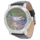 Uhr, Vintage Männeruhr mit schwarzem Lederarmband