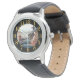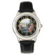 Uhr, Vintage Männeruhr mit schwarzem Lederarmband