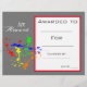 Eine stilvolle Auszeichnung der modernen Klasse mit einem niedlichen Farbspritzer-Image, das perfekt für junge Kunststudenten geeignet ist. Sie können in Ihre eigenen Details schreiben. Eine großartige Ressource für jede Art von Klassenlehrer.