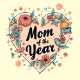 Schönes Herzdesign mit Blume und Gartenwerkzeugen, die "Mama des Jahres" für ein perfektes Muttertagsgeschenk feiern.