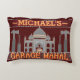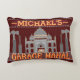 Dieses personalisierte, rechteckige Kissen ist perfekt für die menschliche Höhle. Es heißt "Ihr Name" und zeigt eine Kontur des Taj Mahal mit Hämmern, Schraubenziehern und einem kleinen Auto, das aussieht, als wäre es in der Mitte geparkt. Fügen Sie einfach Ihren Namen hinzu. Die Farben sind dunkelrot, grau und orange. Das Design wiederholt sich auf der Rückseite.