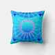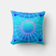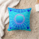 Abstrakte mandala Muster werfen Kissen in einem satinierten Gefälle von überlappenden Scheiben zentriert um ein sprechendes Rad von Sternen - Schattierungen von Türkis / Pfau und Aqua, mit weicher violett betont