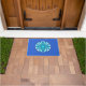 Doormat in einem zwölf Punkte mandala Muster in Schattierungen von blassblau, kobalt/marineblau und weiß auf einem kobaltblauen Hintergrund