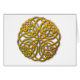 Ein faszinierender keltischer Knoten verflochten zu einem Kreis aus einem reichen antiken Gold. Computerkunst von Kathie Miller.
