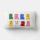 Rechteckiges Kissen mit Maneki neko verschiedener Farben auf weißem Hintergrund