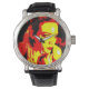 Uhr, Vintage Männeruhr mit schwarzem Lederarmband