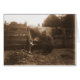 Mann Milchkühe in Barnyard & Fütternd Katzengrußkarte.