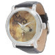 Männerschwarze Uhr mit Holzwolf-Illustration