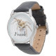 Bräune Spinne und schwarze Lederrippenuhr.