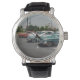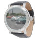Uhr, Vintage Männeruhr mit schwarzem Lederarmband