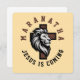 Maranatha Jesus kommt, dieses Christliche Design zeigt einen männlichen Löwenkopf mit einem Kreuz-und Text-Sprichwort, "Maranatha, Jesus kommt".