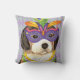 Niedlicher Beagle Welpe, gekleidet in festlicher Federmaske und Perlen, bereit für Spaß auf Mardi Gras oder zu jeder anderen Zeit. Gutes Geschenk für sich und Ihre Beagle liebende Familie und Freunde.