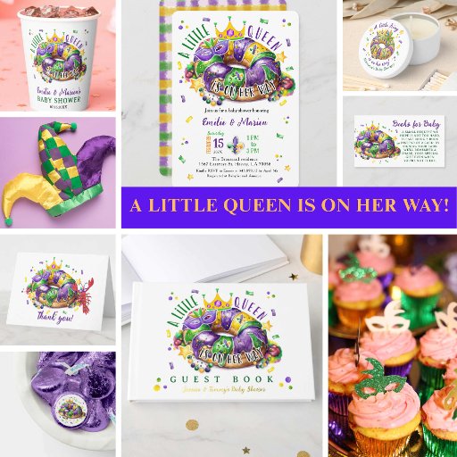 baby shower girlmardi grasa little queenmardi gras cakeyellowgreenpurplelouisianarequest carddiaper raffle