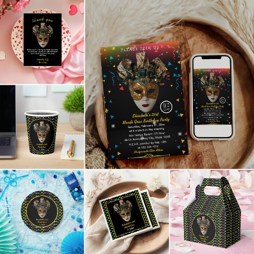 Mardi Gras Mask 21. Geburtstag Party Einladung