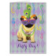 Niedlicher Mops Welpe, gekleidet in festlicher Federmaske und Perlen, bereit für Spaß auf Mardi Gras oder zu jeder anderen Zeit. Gutes Geschenk für sich und Ihre Mops liebende Familie und Freunde.