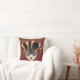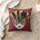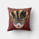 Dieses Kissen wird in bordeauxroter Farbe mit einem festlichen Mardi Gras Maskenprint in Gold, Schwarz und Grau dargestellt. Passen Sie dieses Objekt an oder kaufen Sie, wie es ist.