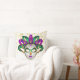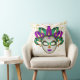 Dieses Kissen wird in Weiß mit einem festlichen Mardi Gras Mask Printdesign gezeigt. Passen Sie dieses Objekt an oder kaufen Sie, wie es ist.