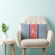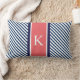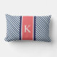 Marine-blaue Streifen u. korallenrotes Monogramm Lendenkissen