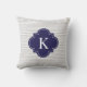 Marine-blaues Grau Stripes Quatrefoil Monogramm Kissen