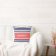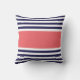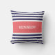 Elegante und moderne Seeart Throwkissen oder -kissen mit einem modernen und stilvollen gestreiften Seemuster, das mit Ihrem Namen in einem preppy Schriftart kundenspezifisches mit Monogramm ist. Die Marine-Blau- und weißevertikalen Streifen, die zu einer korallenroten Farbe kontrastiert werden, blockieren Hintergrund. Personifizieren Sie Ihr Geschenk, indem Sie Ihren eigenen Namen oder Initiale addieren. Beschließen Sie Ihren eigenen Schriftart und Farben, um es Ihre Selbst zu machen. Dieser trendy Küstenstrandentwurf macht ein großes Geschenk für selbst oder jemand speziell und erhöht jeden möglichen Zuhause-, Strandhaus-, Sofa-, Aufenthaltsraum-, Schlafzimmer-, Büro-, Boots- oder Unischlafsaalraum.