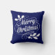 Marine und weiße frohe Weihnacht-Skript-Typografie Kissen