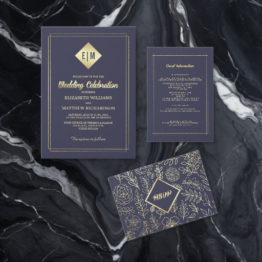 Marineblau | Gold Foil Blumenmuster Einfach und elegant Design Personalisierte Hochzeitseinladungen. Passen Sie Namen, Datum, Text und alle Details Ihrer Einladungen an. Matching Bridal Shower Einladungen, Speichern Sie die Date Cards, Bridesmaid auf Anfrage Karten, Dankeschön Karten, Gastgeschenke Hochzeiten und Geschenke verfügbar in der Simple & Elegant Kategorie unseres Stores.