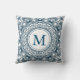Elegante Blumenmandala marineblau-blau und weiß. Optionales Monogramm.