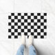 Schachte Quadrate schwarz-weiß geometrisches Retromuster Doormat. Outdoor Décor Geschenk für jedermann. Cooles, hintergrundgezogenes geometrisches Quadratmuster. Vintage Fliesen schwarz-weiß modernes Schachbrett.