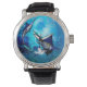 Uhr, Vintage Männeruhr mit schwarzem Lederarmband