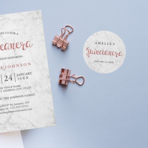 Hübscher weißer, moderner Marmor und goldene Rose. Für die passende Quinceanera Kollektion besuchen Sie unseren Kleinen Bayleigh Shop!