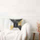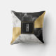 Moderne mit Monogramm Akzente werfen Kissen in einem geometrischen Muster aus goldfarbener Tonfolie, weißem Marmor und schwarzem Marmor. Ein schwarz-goldenes Quadrat, in der Mitte des Kissens, hat einen weißen Single Buchstaben Monogramm bereit, um zu personalisieren. Liebliche Wohngestaltung und macht eine tolle Geschenkidee.