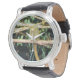 Uhr, Vintage Männeruhr mit schwarzem Lederarmband