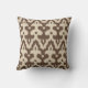 marokkanische Fliesen inspirierte Damast-Muster aus ineinander greifenden positiven / negativen Fleur-de-lis-Formen mit gestreiften, Ikat-gewebten Texturen - tiefes Taupe und hellbeige Kissen