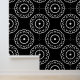 Diese exquisite, schale und klebige Tapete verbindet zeitlose Eleganz mit moderner Drehung. Das Design umfasst eine Reihe von konzentrierten, mandalaähnlichen Motiven auf einem tiefen schwarzen Hintergrund. Die aufwändigen Details erinnern an die Kunst der marokkanischen Kacheln. Ein hoher Kontrast verleiht jedem Raum ein dramatisches und anspruchsvolles Ambiente. Ideal für die Betonung kleinerer Bereiche.