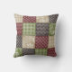 Maroon, Brown, Tan & Green Quilt Look Kissen