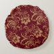 Dieses Bild zeigt ein hübsches antikes goldfarbenes Blumenmuster über einem rot-goldfarbenen Hintergrund. Beide Seiten des Kissens haben das gleiche Bild. Elegant, ein wenig Jugendstil.