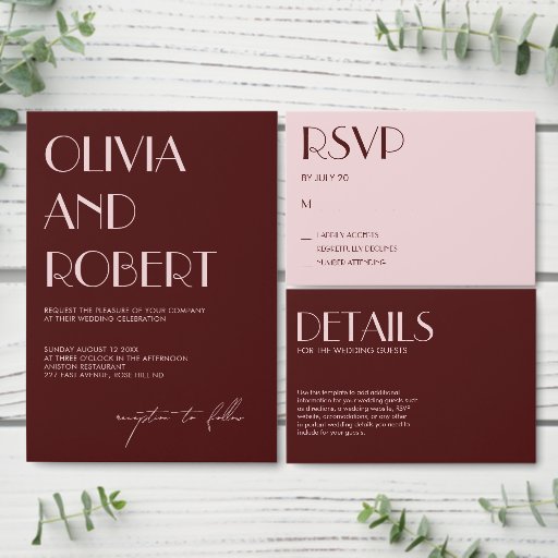Maroon und hellrosa Hochzeitskarte RSVP Karte
