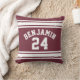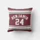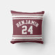 Maroon und White Jersey Stripes Individuelle Name Kissen