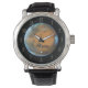 Uhr, Vintage Männeruhr mit schwarzem Lederarmband