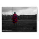 Vollständig anpassbare Grußkarte eines Masai im Masai Mara in Kenia. Schwarz-Weiß außer der kräftigen Decke, die von den Masai getragen wird.