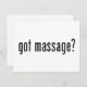 Nach dieser sehr beliebten Werbung haben wir dieses niedliche "Got Massage?"-Design auf vielen Produkten got, damit Sie es auf Ihren Massage-Visitenkarten verwenden können, Dankeschön-Karten, oder als Kundengeschenke. Erhältlich in schwarzem oder weißem Text.